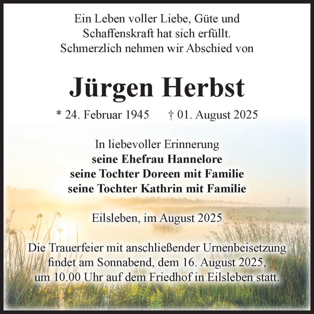 Hier finden Sie alle Traueranzeigen aus der Zeitung, die bisher für Jürgen Herbst erschienen sind. Weitere Traueranzeigen, die in der Zeitung erscheinen, werden hier ebenfalls aufgelistet