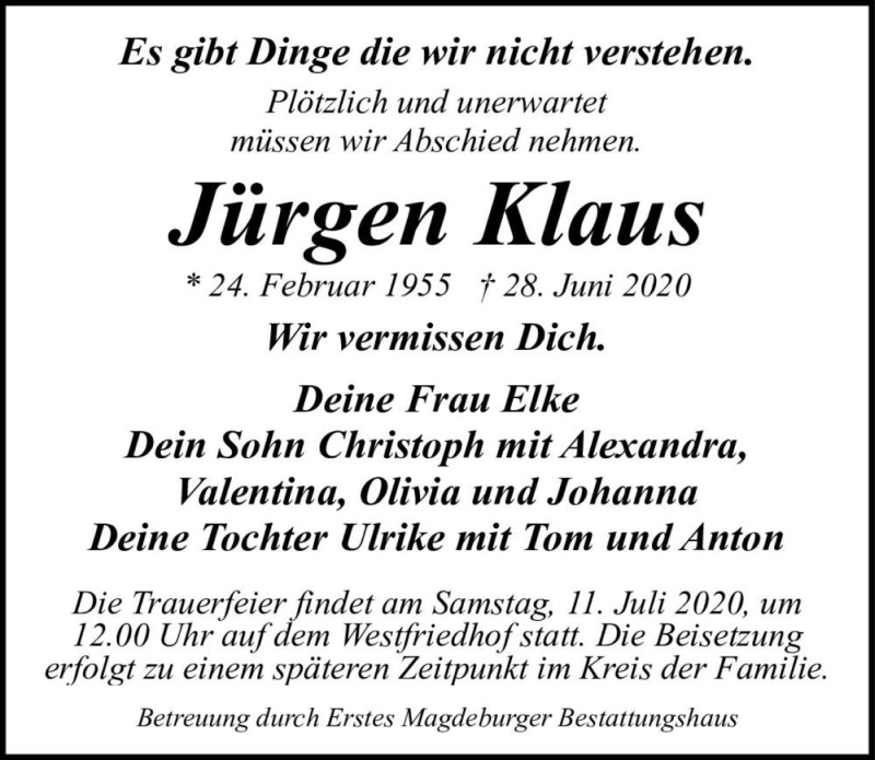 Hier finden Sie alle Traueranzeigen aus der Zeitung, die bisher für Jürgen Klaus erschienen sind. Weitere Traueranzeigen, die in der Zeitung erscheinen, werden hier ebenfalls aufgelistet