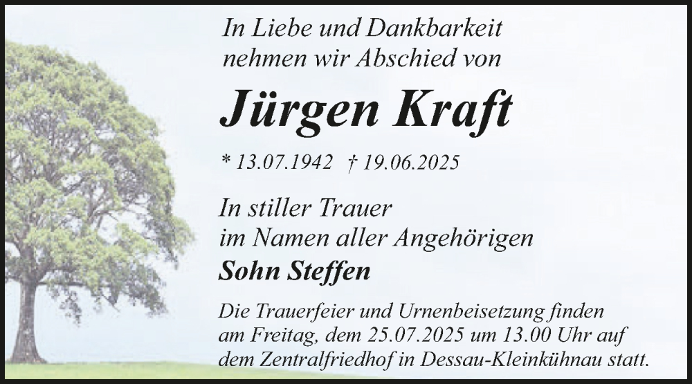 Hier finden Sie alle Traueranzeigen aus der Zeitung, die bisher für Jürgen Kraft erschienen sind. Weitere Traueranzeigen, die in der Zeitung erscheinen, werden hier ebenfalls aufgelistet