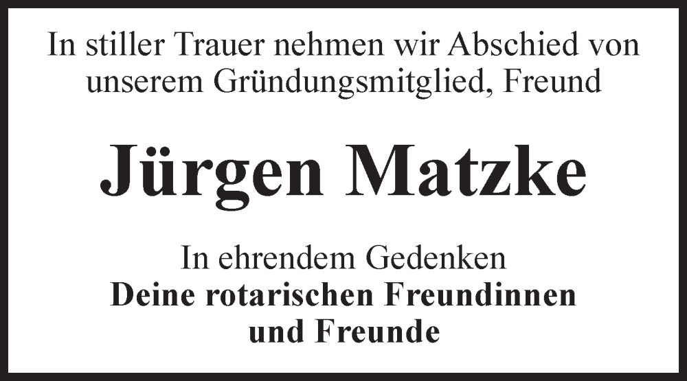 Hier finden Sie alle Traueranzeigen aus der Zeitung, die bisher für Jürgen Matzke erschienen sind. Weitere Traueranzeigen, die in der Zeitung erscheinen, werden hier ebenfalls aufgelistet