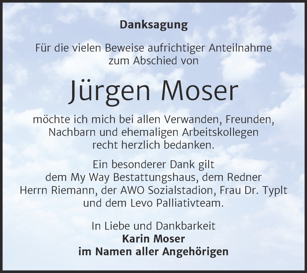 Hier finden Sie alle Traueranzeigen aus der Zeitung, die bisher für Jürgen Moser erschienen sind. Weitere Traueranzeigen, die in der Zeitung erscheinen, werden hier ebenfalls aufgelistet