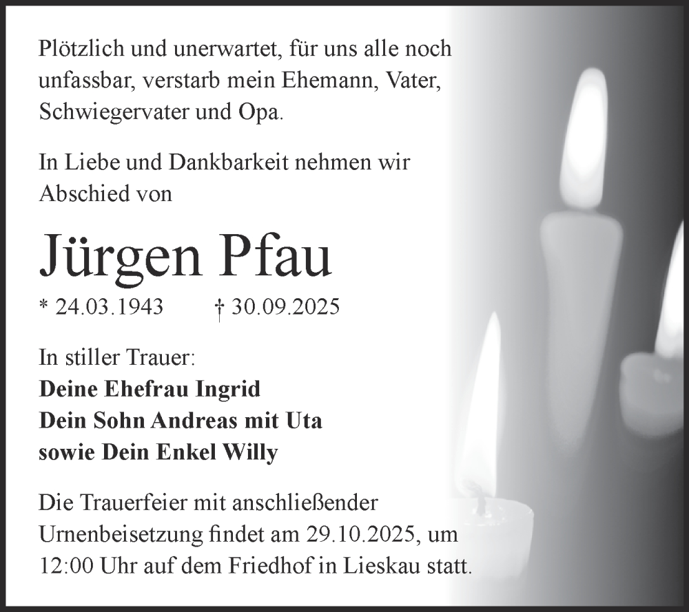Hier finden Sie alle Traueranzeigen aus der Zeitung, die bisher für Jürgen Pfau erschienen sind. Weitere Traueranzeigen, die in der Zeitung erscheinen, werden hier ebenfalls aufgelistet