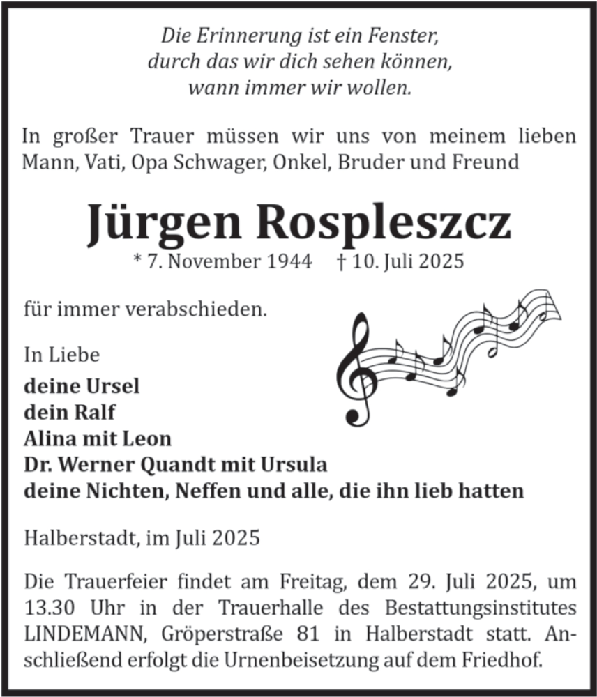 Hier finden Sie alle Traueranzeigen aus der Zeitung, die bisher für Jürgen Rospleszcz erschienen sind. Weitere Traueranzeigen, die in der Zeitung erscheinen, werden hier ebenfalls aufgelistet