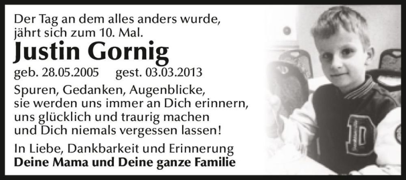 Hier finden Sie alle Traueranzeigen aus der Zeitung, die bisher für Justin Gornig erschienen sind. Weitere Traueranzeigen, die in der Zeitung erscheinen, werden hier ebenfalls aufgelistet