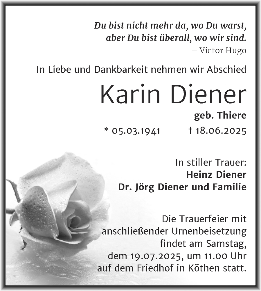 Hier finden Sie alle Traueranzeigen aus der Zeitung, die bisher für Karin Diener erschienen sind. Weitere Traueranzeigen, die in der Zeitung erscheinen, werden hier ebenfalls aufgelistet