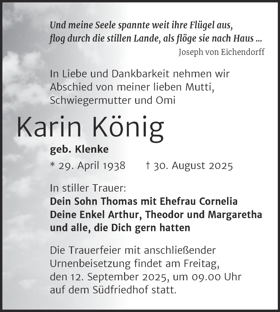 Hier finden Sie alle Traueranzeigen aus der Zeitung, die bisher für Karin König erschienen sind. Weitere Traueranzeigen, die in der Zeitung erscheinen, werden hier ebenfalls aufgelistet