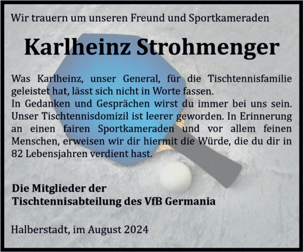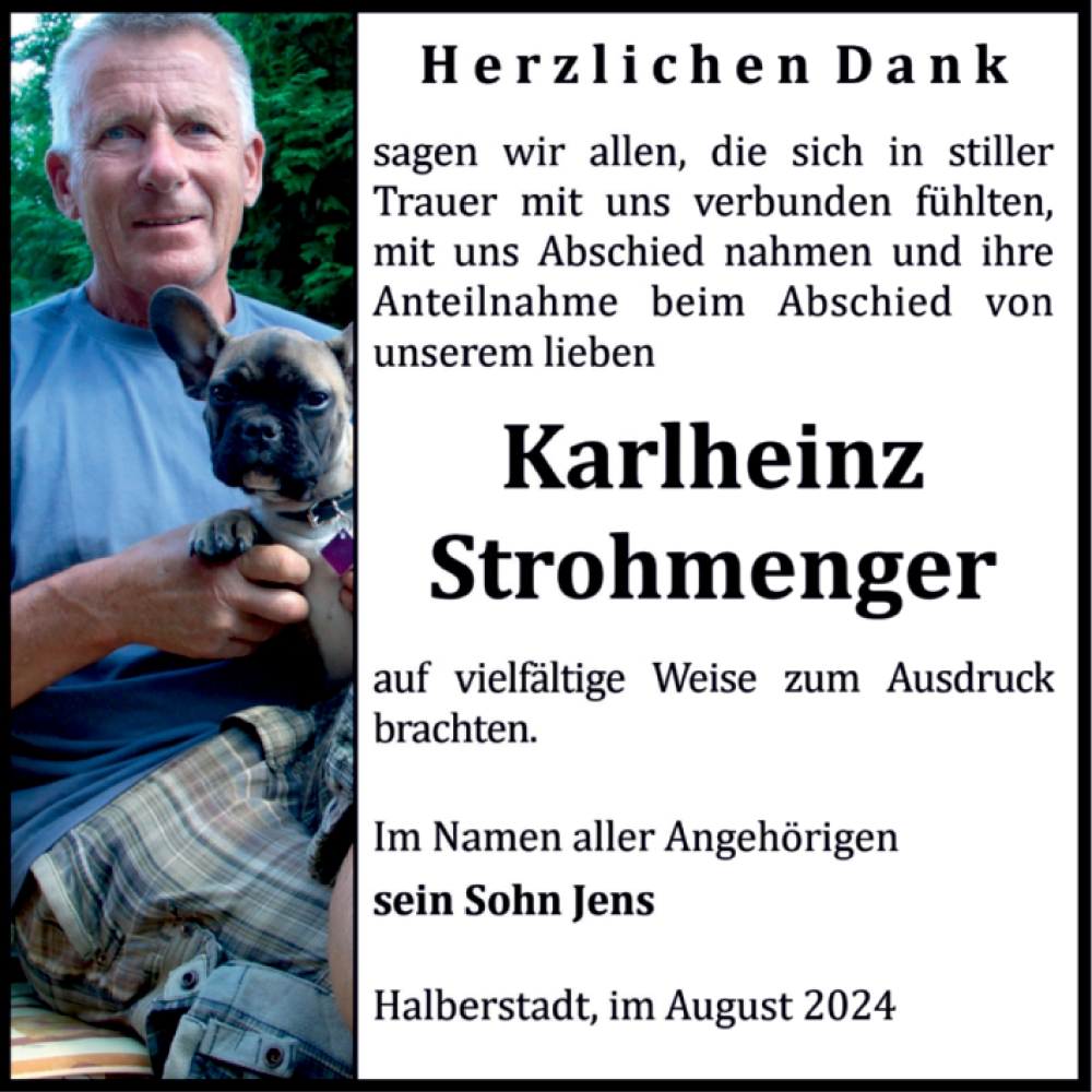 Hier finden Sie alle Traueranzeigen aus der Zeitung, die bisher für Karlheinz Strohmenger erschienen sind. Weitere Traueranzeigen, die in der Zeitung erscheinen, werden hier ebenfalls aufgelistet