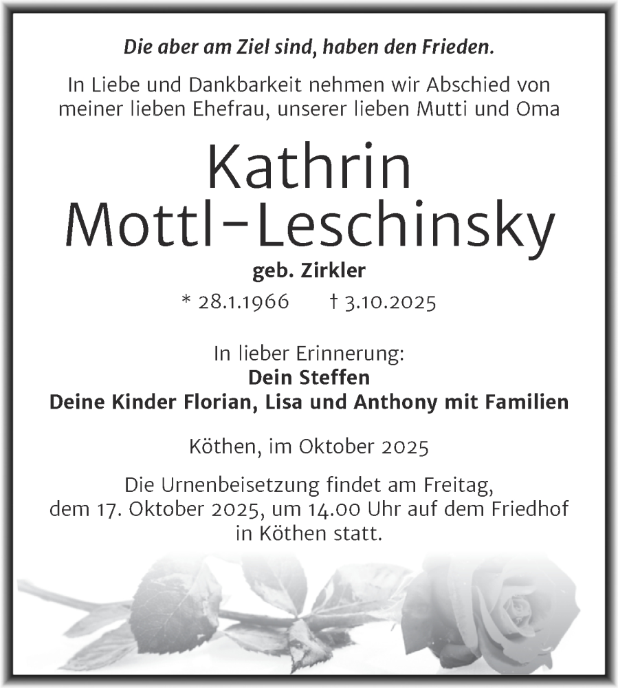 Hier finden Sie alle Traueranzeigen aus der Zeitung, die bisher für Kathrin Mottl-Leschinsky erschienen sind. Weitere Traueranzeigen, die in der Zeitung erscheinen, werden hier ebenfalls aufgelistet