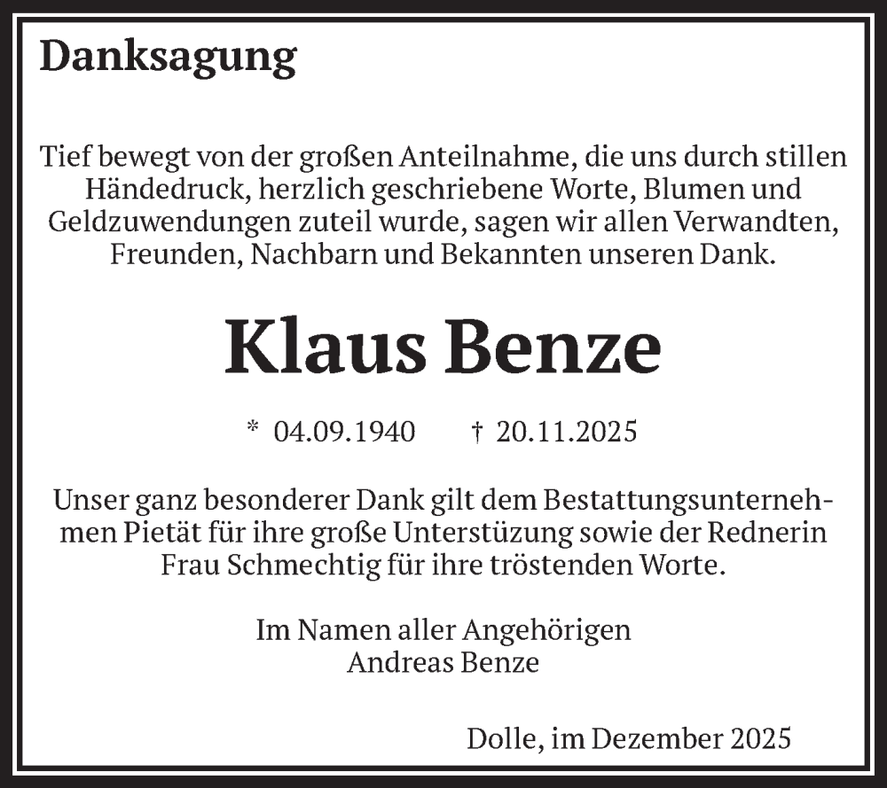 Hier finden Sie alle Traueranzeigen aus der Zeitung, die bisher für Klaus Benze erschienen sind. Weitere Traueranzeigen, die in der Zeitung erscheinen, werden hier ebenfalls aufgelistet