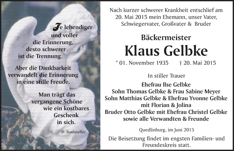 Hier finden Sie alle Traueranzeigen aus der Zeitung, die bisher für Klaus Gelbke erschienen sind. Weitere Traueranzeigen, die in der Zeitung erscheinen, werden hier ebenfalls aufgelistet