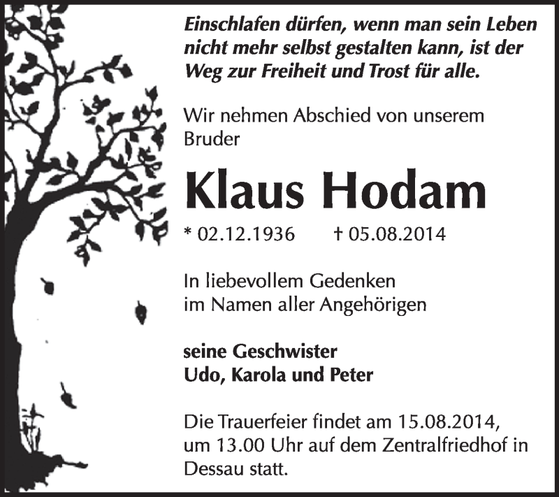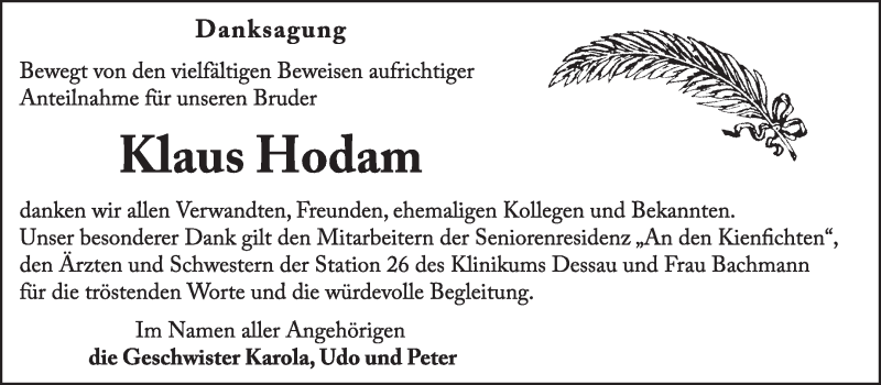Hier finden Sie alle Traueranzeigen aus der Zeitung, die bisher für Klaus Hodam erschienen sind. Weitere Traueranzeigen, die in der Zeitung erscheinen, werden hier ebenfalls aufgelistet