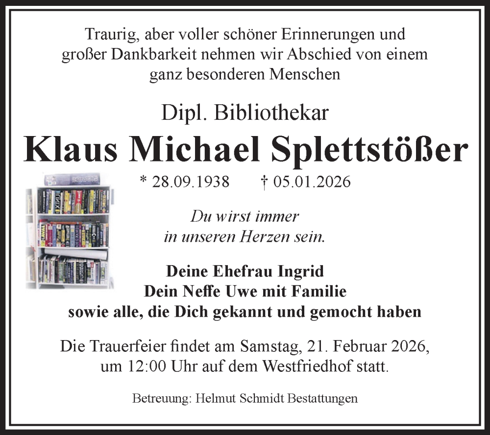 Hier finden Sie alle Traueranzeigen aus der Zeitung, die bisher für Klaus Michael Splettstößer erschienen sind. Weitere Traueranzeigen, die in der Zeitung erscheinen, werden hier ebenfalls aufgelistet