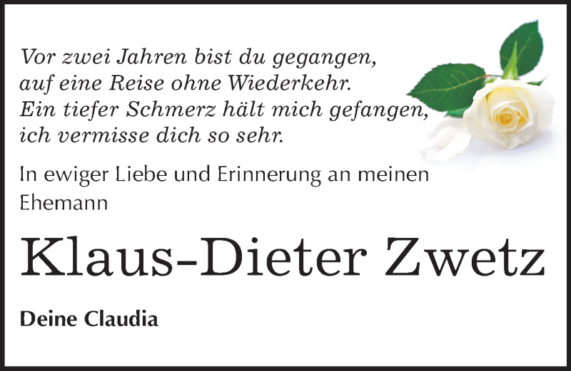 Hier finden Sie alle Traueranzeigen aus der Zeitung, die bisher für Klaus Dieter Zwetz erschienen sind. Weitere Traueranzeigen, die in der Zeitung erscheinen, werden hier ebenfalls aufgelistet