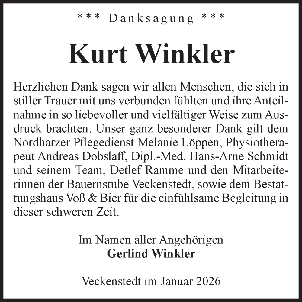 Hier finden Sie alle Traueranzeigen aus der Zeitung, die bisher für Kurt Winkler erschienen sind. Weitere Traueranzeigen, die in der Zeitung erscheinen, werden hier ebenfalls aufgelistet
