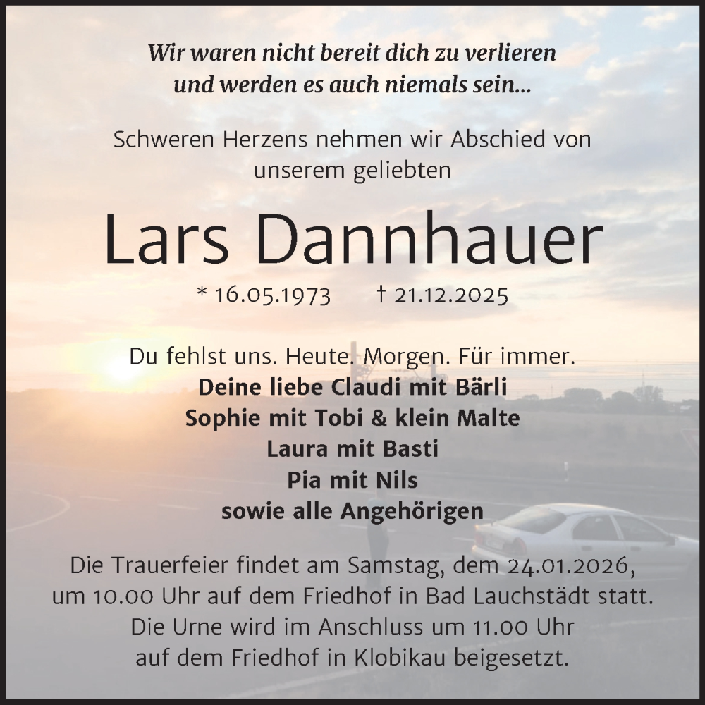 Hier finden Sie alle Traueranzeigen aus der Zeitung, die bisher für Lars Dannhauer erschienen sind. Weitere Traueranzeigen, die in der Zeitung erscheinen, werden hier ebenfalls aufgelistet