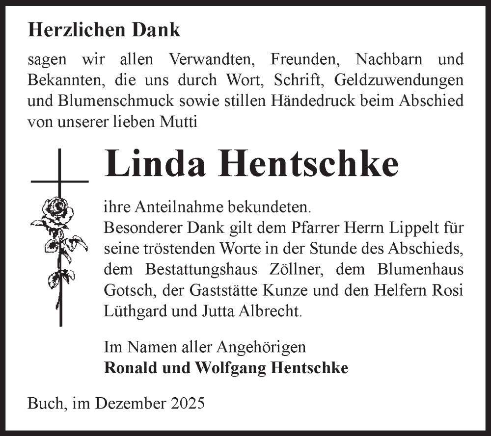 Hier finden Sie alle Traueranzeigen aus der Zeitung, die bisher für Linda Hentschke erschienen sind. Weitere Traueranzeigen, die in der Zeitung erscheinen, werden hier ebenfalls aufgelistet