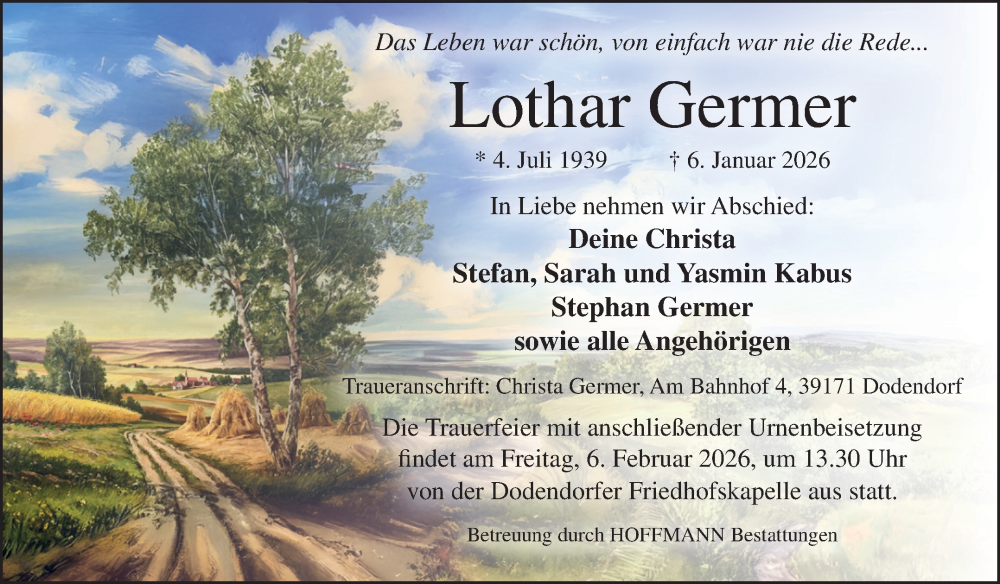Hier finden Sie alle Traueranzeigen aus der Zeitung, die bisher für Lothar Germer erschienen sind. Weitere Traueranzeigen, die in der Zeitung erscheinen, werden hier ebenfalls aufgelistet