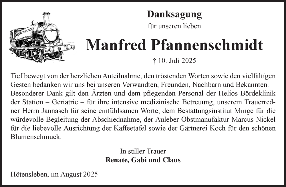 Hier finden Sie alle Traueranzeigen aus der Zeitung, die bisher für Manfred Pfannenschmidt erschienen sind. Weitere Traueranzeigen, die in der Zeitung erscheinen, werden hier ebenfalls aufgelistet