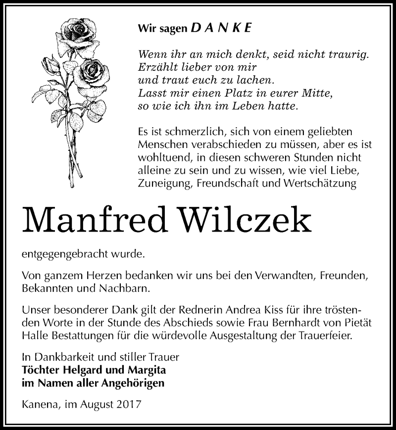 Hier finden Sie alle Traueranzeigen aus der Zeitung, die bisher für Manfred Wilczek erschienen sind. Weitere Traueranzeigen, die in der Zeitung erscheinen, werden hier ebenfalls aufgelistet