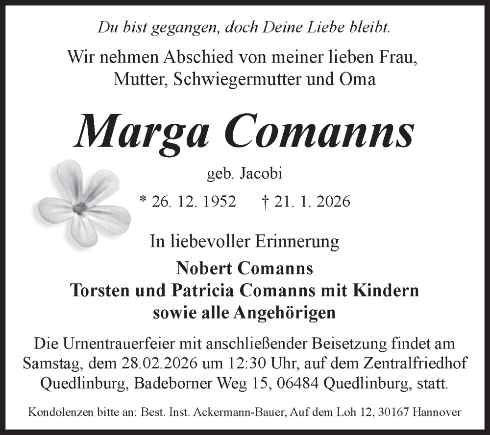 Hier finden Sie alle Traueranzeigen aus der Zeitung, die bisher für Marga Comanns erschienen sind. Weitere Traueranzeigen, die in der Zeitung erscheinen, werden hier ebenfalls aufgelistet