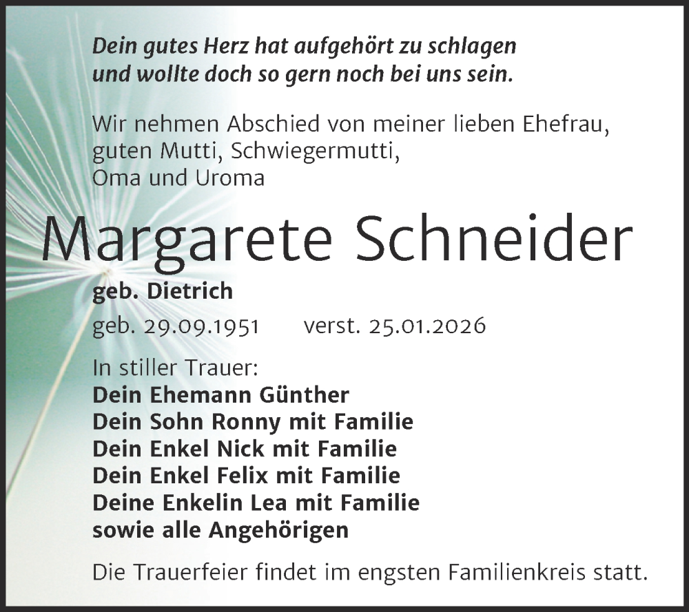 Hier finden Sie alle Traueranzeigen aus der Zeitung, die bisher für Margarete Schneider erschienen sind. Weitere Traueranzeigen, die in der Zeitung erscheinen, werden hier ebenfalls aufgelistet