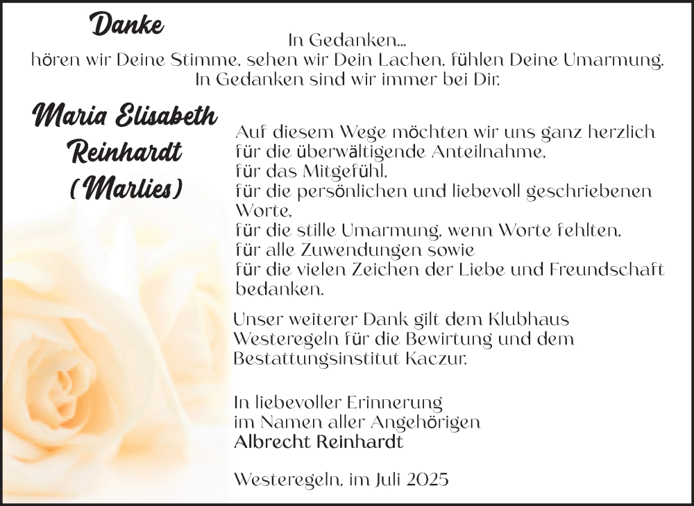 Hier finden Sie alle Traueranzeigen aus der Zeitung, die bisher für Maria Elisabeth Reinhardt erschienen sind. Weitere Traueranzeigen, die in der Zeitung erscheinen, werden hier ebenfalls aufgelistet
