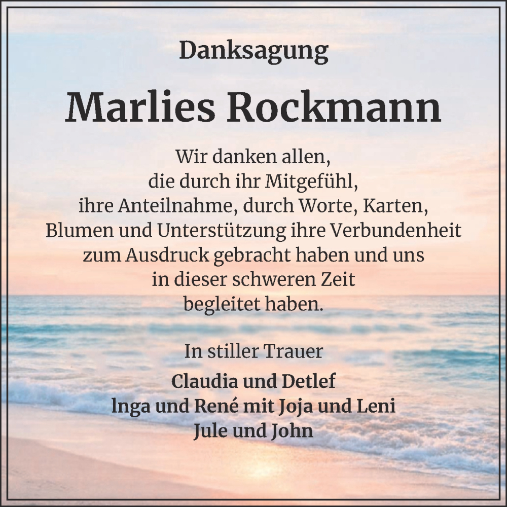Hier finden Sie alle Traueranzeigen aus der Zeitung, die bisher für Marlies Rockmann erschienen sind. Weitere Traueranzeigen, die in der Zeitung erscheinen, werden hier ebenfalls aufgelistet
