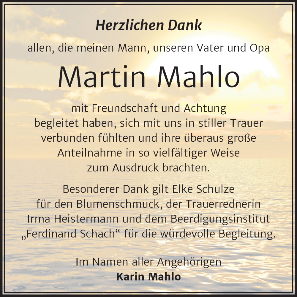 Hier finden Sie alle Traueranzeigen aus der Zeitung, die bisher für Martin Mahlo erschienen sind. Weitere Traueranzeigen, die in der Zeitung erscheinen, werden hier ebenfalls aufgelistet