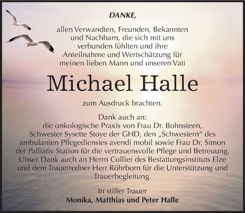 Hier finden Sie alle Traueranzeigen aus der Zeitung, die bisher für Michael Halle erschienen sind. Weitere Traueranzeigen, die in der Zeitung erscheinen, werden hier ebenfalls aufgelistet