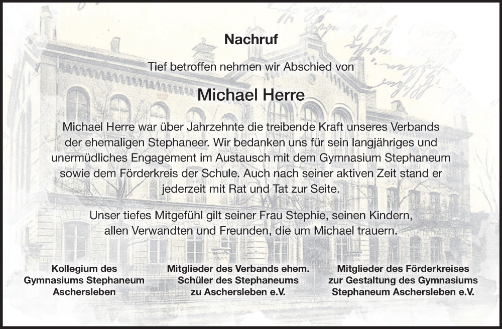 Hier finden Sie alle Traueranzeigen aus der Zeitung, die bisher für Michael Herre erschienen sind. Weitere Traueranzeigen, die in der Zeitung erscheinen, werden hier ebenfalls aufgelistet