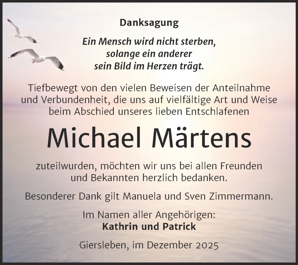 Hier finden Sie alle Traueranzeigen aus der Zeitung, die bisher für Michael Märtens erschienen sind. Weitere Traueranzeigen, die in der Zeitung erscheinen, werden hier ebenfalls aufgelistet