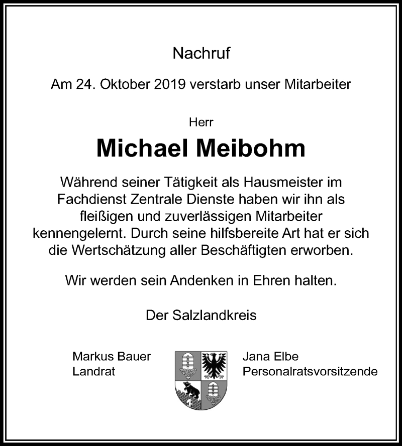 Hier finden Sie alle Traueranzeigen aus der Zeitung, die bisher für Michael Meibohm erschienen sind. Weitere Traueranzeigen, die in der Zeitung erscheinen, werden hier ebenfalls aufgelistet