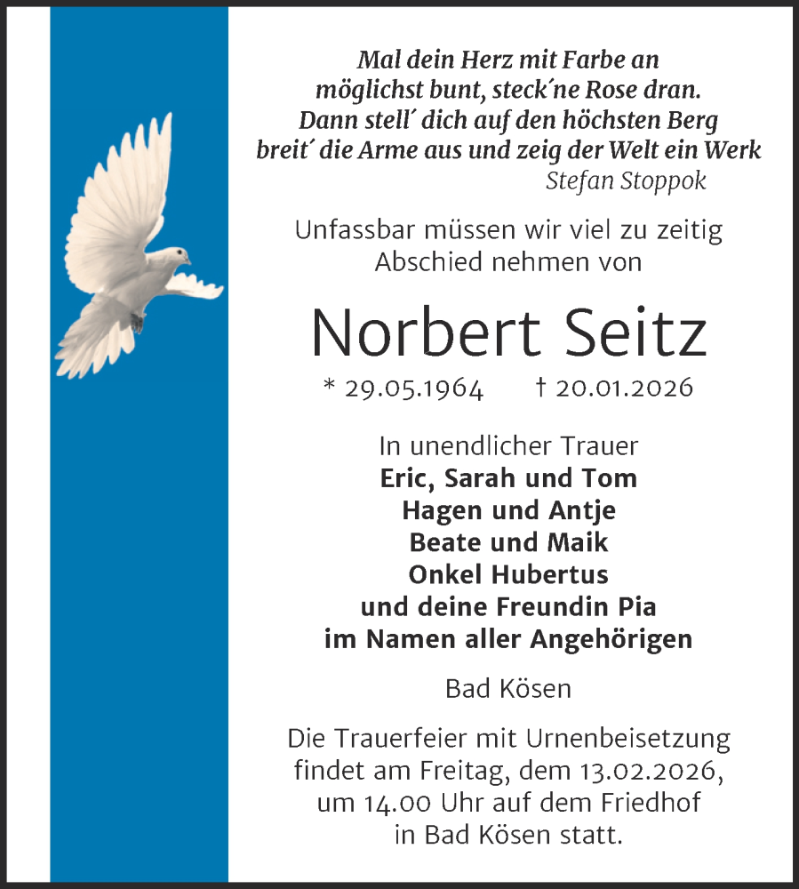 Hier finden Sie alle Traueranzeigen aus der Zeitung, die bisher für Norbert Seitz erschienen sind. Weitere Traueranzeigen, die in der Zeitung erscheinen, werden hier ebenfalls aufgelistet