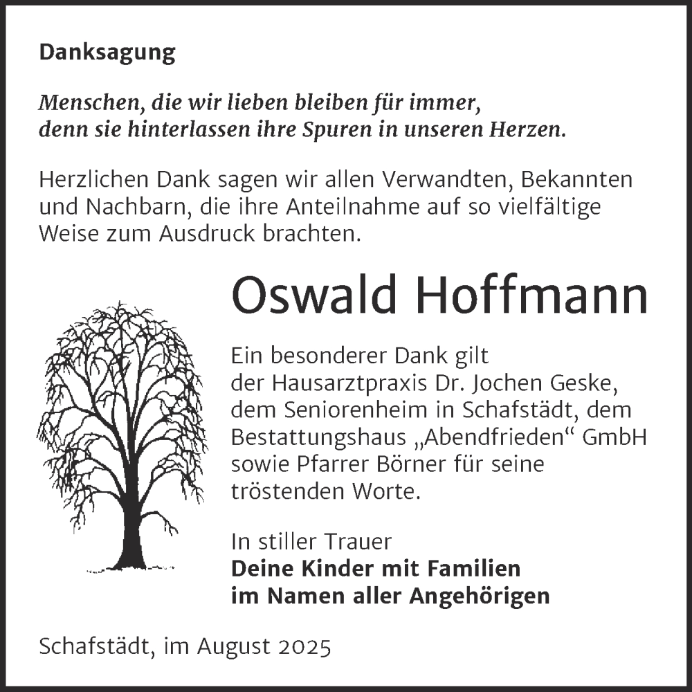 Hier finden Sie alle Traueranzeigen aus der Zeitung, die bisher für Oswald Hoffmann erschienen sind. Weitere Traueranzeigen, die in der Zeitung erscheinen, werden hier ebenfalls aufgelistet