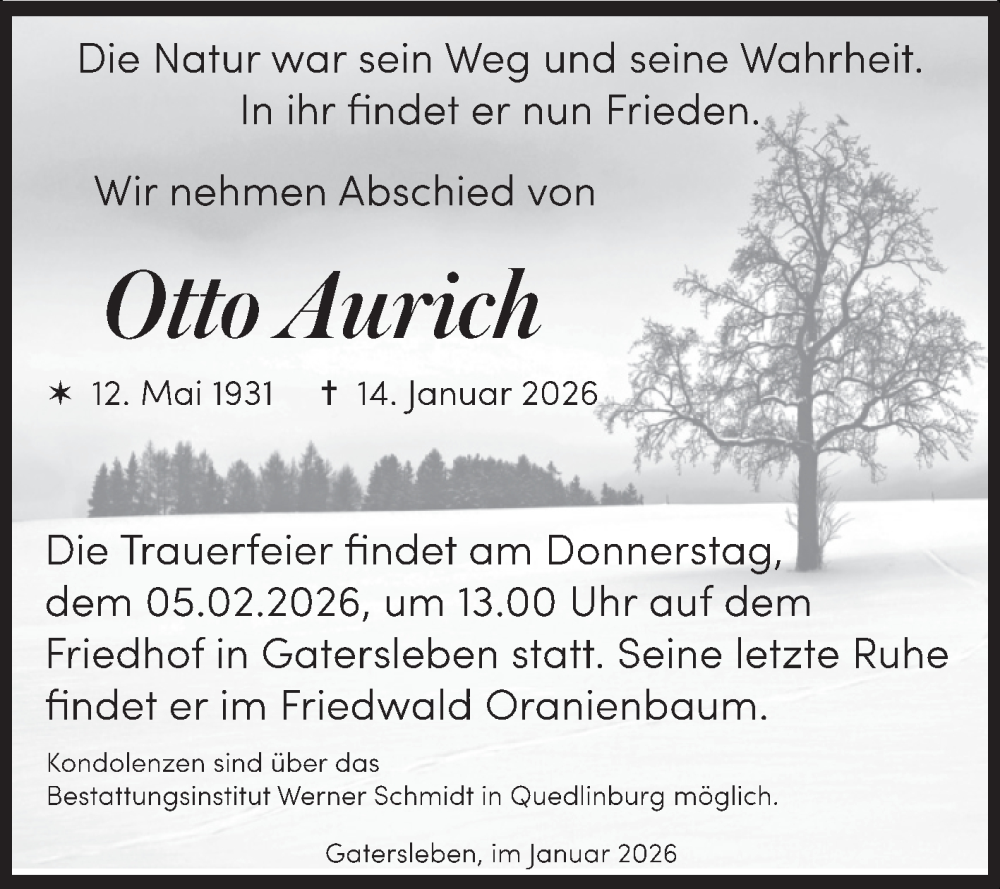 Hier finden Sie alle Traueranzeigen aus der Zeitung, die bisher für Otto Aurich erschienen sind. Weitere Traueranzeigen, die in der Zeitung erscheinen, werden hier ebenfalls aufgelistet