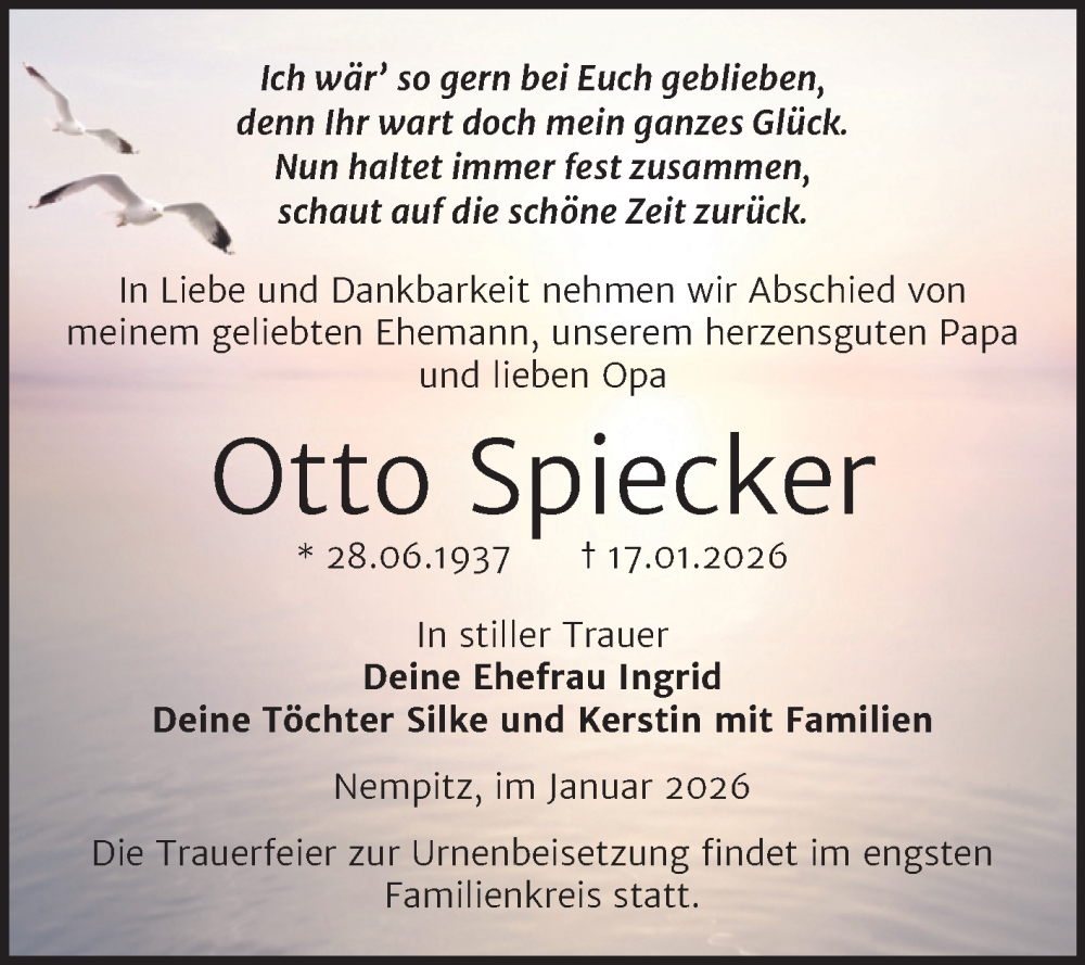 Hier finden Sie alle Traueranzeigen aus der Zeitung, die bisher für Otto Spiecker erschienen sind. Weitere Traueranzeigen, die in der Zeitung erscheinen, werden hier ebenfalls aufgelistet