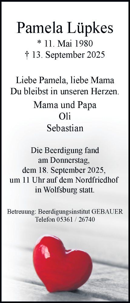 Hier finden Sie alle Traueranzeigen aus der Zeitung, die bisher für Pamela Lüpkes erschienen sind. Weitere Traueranzeigen, die in der Zeitung erscheinen, werden hier ebenfalls aufgelistet