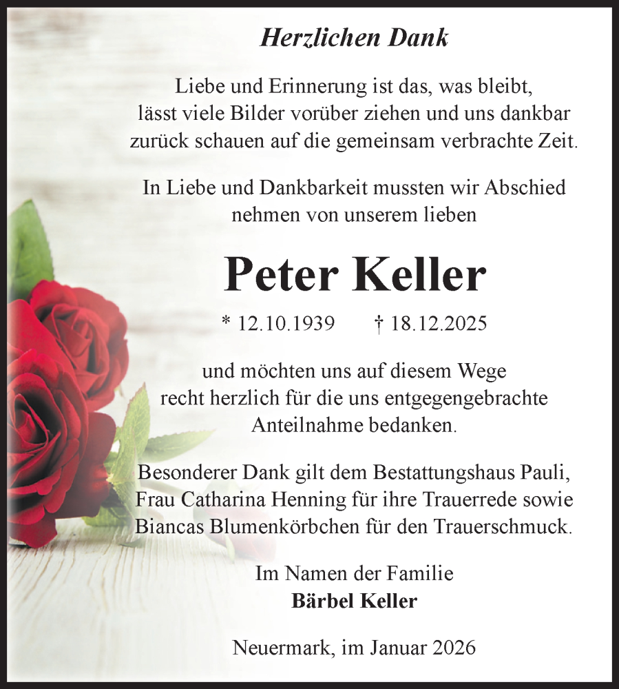 Hier finden Sie alle Traueranzeigen aus der Zeitung, die bisher für Peter Keller erschienen sind. Weitere Traueranzeigen, die in der Zeitung erscheinen, werden hier ebenfalls aufgelistet