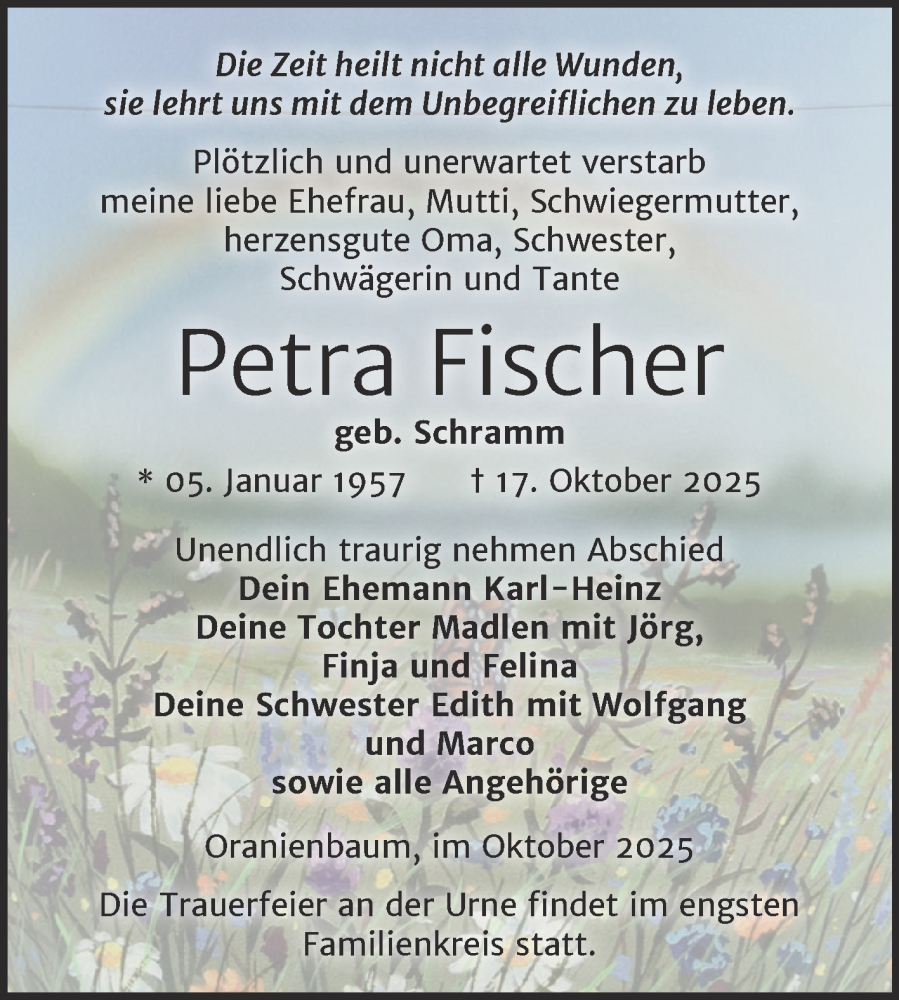 Hier finden Sie alle Traueranzeigen aus der Zeitung, die bisher für Petra Fischer erschienen sind. Weitere Traueranzeigen, die in der Zeitung erscheinen, werden hier ebenfalls aufgelistet