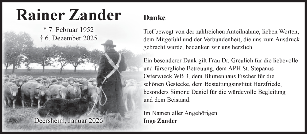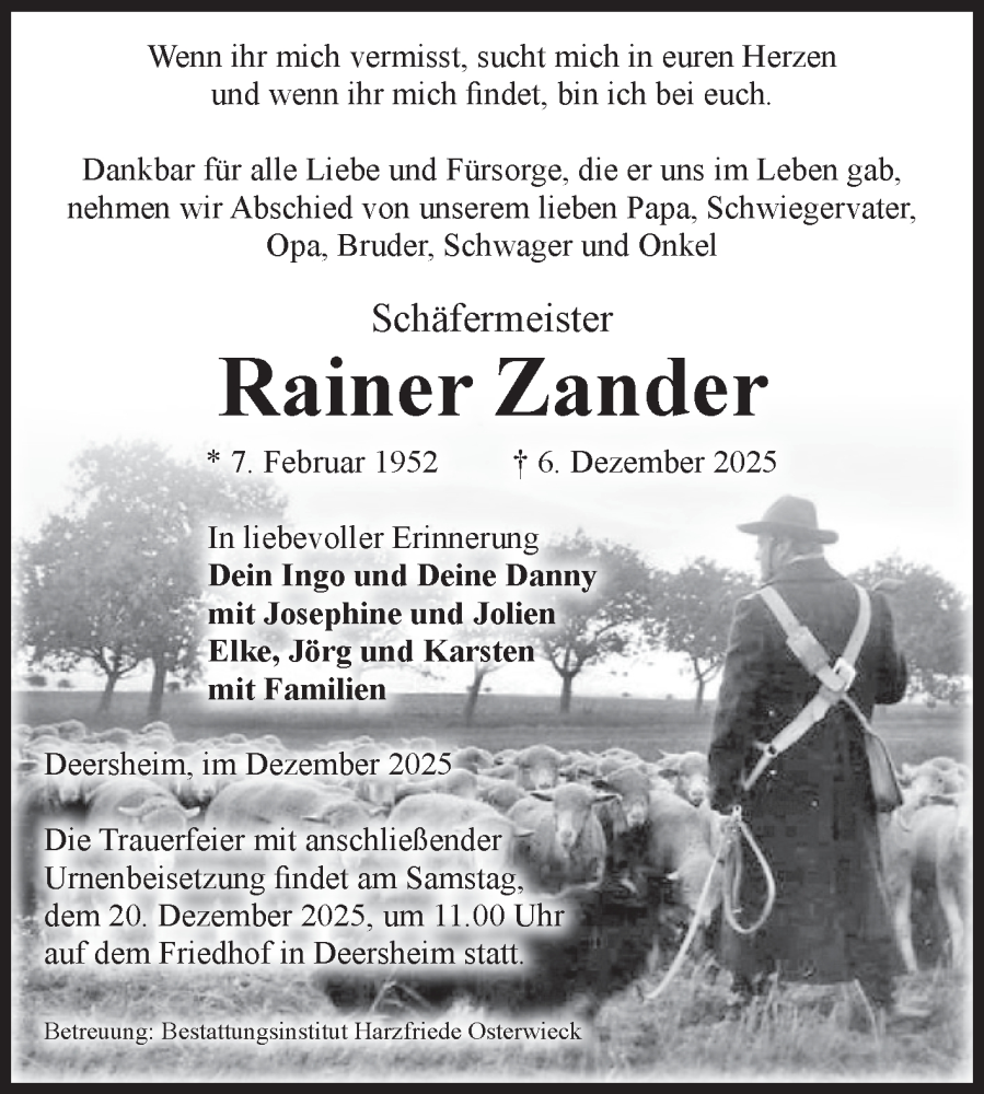 Hier finden Sie alle Traueranzeigen aus der Zeitung, die bisher für Rainer Zander erschienen sind. Weitere Traueranzeigen, die in der Zeitung erscheinen, werden hier ebenfalls aufgelistet