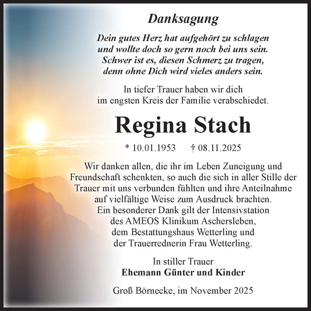 Hier finden Sie alle Traueranzeigen aus der Zeitung, die bisher für Regina Stach erschienen sind. Weitere Traueranzeigen, die in der Zeitung erscheinen, werden hier ebenfalls aufgelistet