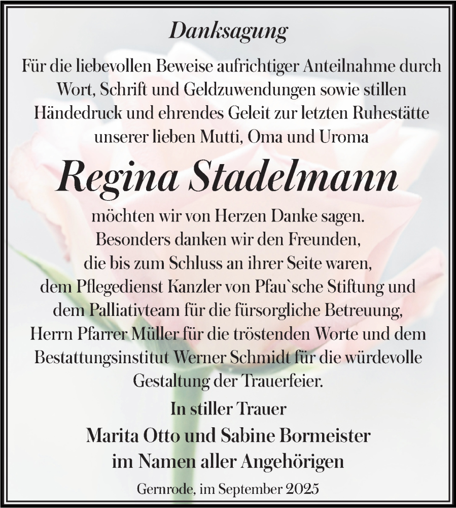 Hier finden Sie alle Traueranzeigen aus der Zeitung, die bisher für Regina Stadelmann erschienen sind. Weitere Traueranzeigen, die in der Zeitung erscheinen, werden hier ebenfalls aufgelistet