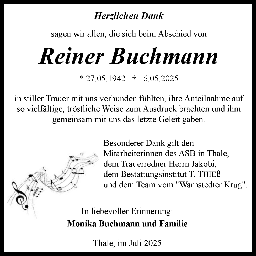 Hier finden Sie alle Traueranzeigen aus der Zeitung, die bisher für Reiner Buchmann erschienen sind. Weitere Traueranzeigen, die in der Zeitung erscheinen, werden hier ebenfalls aufgelistet