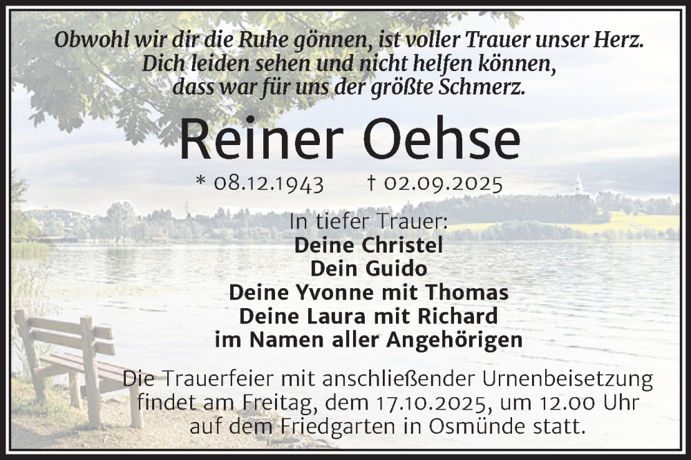 Hier finden Sie alle Traueranzeigen aus der Zeitung, die bisher für Reiner Oehse erschienen sind. Weitere Traueranzeigen, die in der Zeitung erscheinen, werden hier ebenfalls aufgelistet