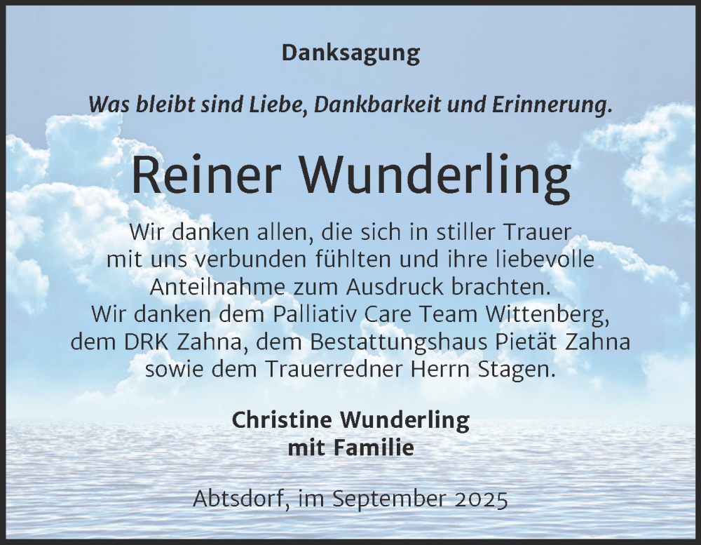 Hier finden Sie alle Traueranzeigen aus der Zeitung, die bisher für Reiner Wunderling erschienen sind. Weitere Traueranzeigen, die in der Zeitung erscheinen, werden hier ebenfalls aufgelistet