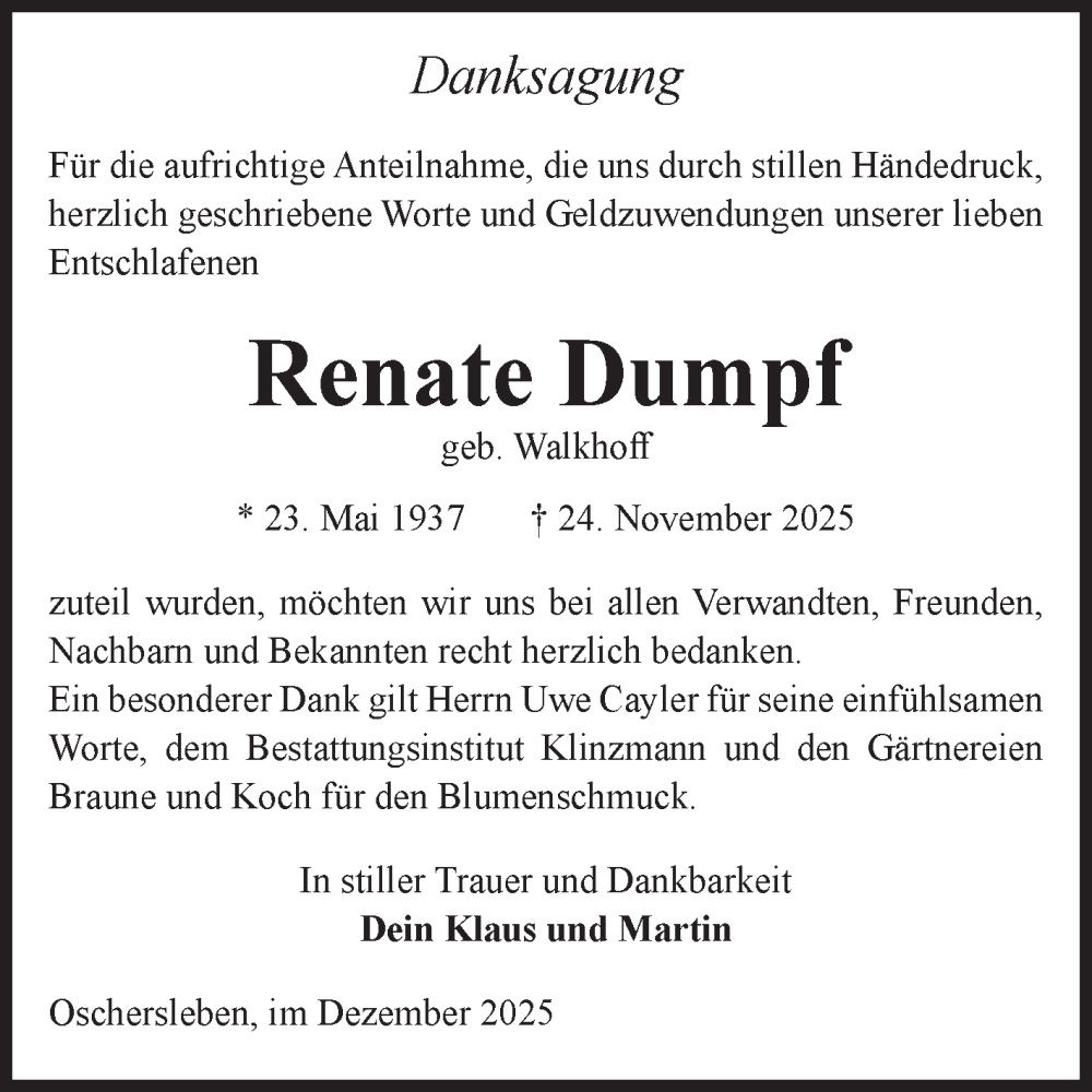 Hier finden Sie alle Traueranzeigen aus der Zeitung, die bisher für Renate Dumpf erschienen sind. Weitere Traueranzeigen, die in der Zeitung erscheinen, werden hier ebenfalls aufgelistet