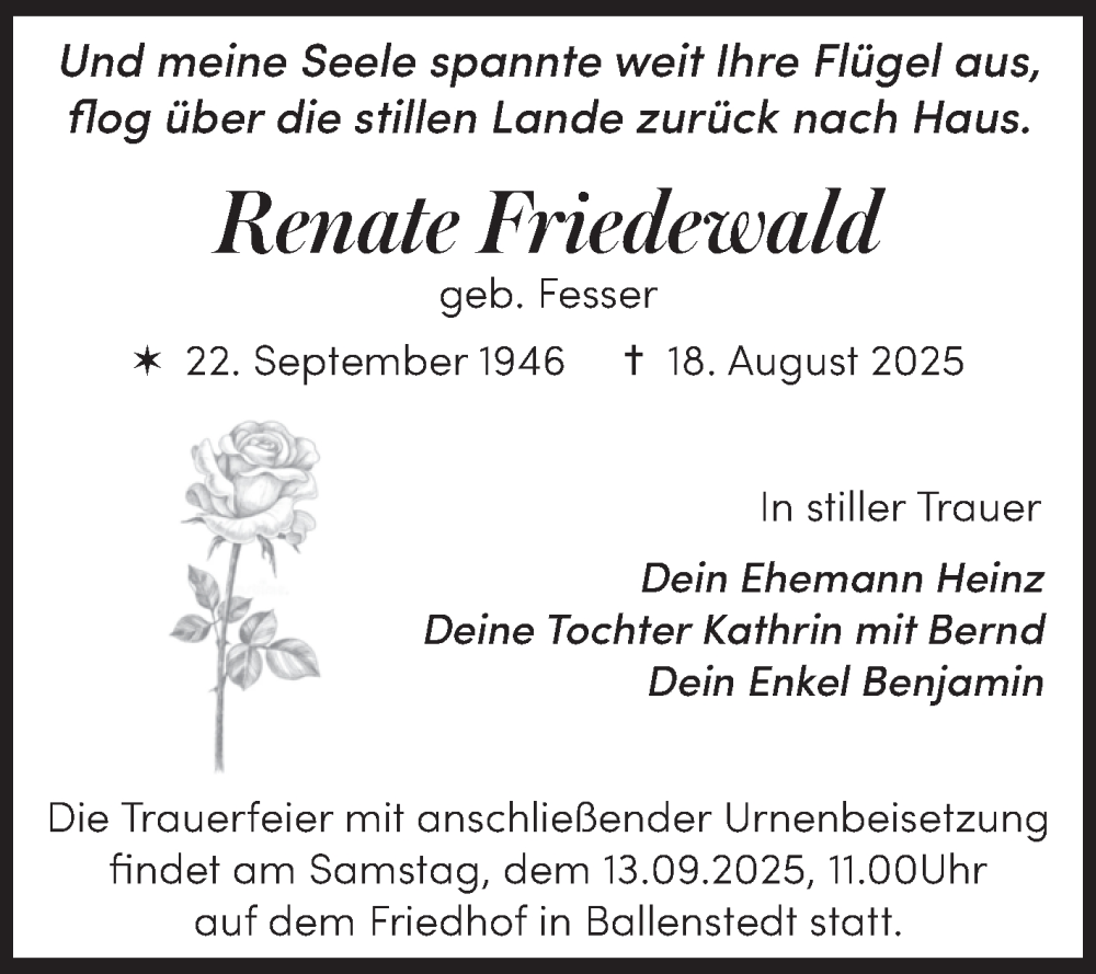 Hier finden Sie alle Traueranzeigen aus der Zeitung, die bisher für Renate Friedewald erschienen sind. Weitere Traueranzeigen, die in der Zeitung erscheinen, werden hier ebenfalls aufgelistet