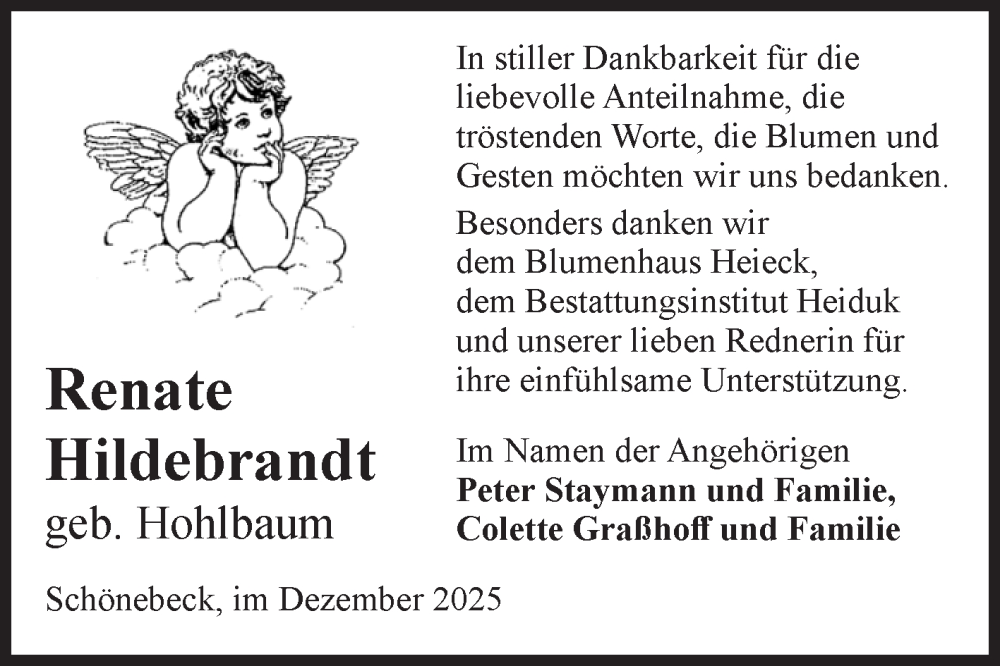 Hier finden Sie alle Traueranzeigen aus der Zeitung, die bisher für Renate Hildebrandt erschienen sind. Weitere Traueranzeigen, die in der Zeitung erscheinen, werden hier ebenfalls aufgelistet