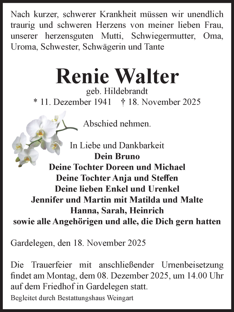 Hier finden Sie alle Traueranzeigen aus der Zeitung, die bisher für Renie Walter erschienen sind. Weitere Traueranzeigen, die in der Zeitung erscheinen, werden hier ebenfalls aufgelistet