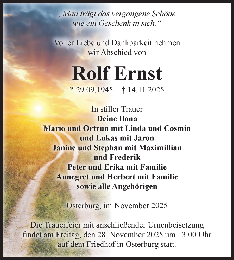 Hier finden Sie alle Traueranzeigen aus der Zeitung, die bisher für Rolf Ernst erschienen sind. Weitere Traueranzeigen, die in der Zeitung erscheinen, werden hier ebenfalls aufgelistet